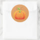 Round sticker shown with a autumn fall harvest pumpkin print. Customise this item or buy as is.