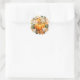 Sticker is shown in the round with a lovely fall pumpkin floral watercolor print.