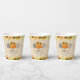 This design features three adorable pumpkins in orange, black and white plaid, and leopard print on a burlap print. Sunflowers and pumpkins encircle the edges of the cup on the top and bottom. The expectant mum's name in a handwritten cursive typography is featured along with "Baby Shower" and the date.