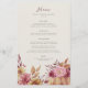 Fall in love with this beautiful rustic menu design for autumn bridal showers, baby showers, engagement parties, rehearsal dinners and more. Warm and elegant design features wildflowers, foliage, and a pumpkin in soft fall colours.
