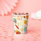 The beautiful, warm colours of fall leaves and interesting pumpkin varieties inspired me to design this unique pattern. It's accented with red berries, dried yellow flowers, and acorns. Lovely on custom paper cups with optional lids for an autumn or Thanksgiving get together! You can adjust the pattern size to your liking and change the light cream background to your favourite.