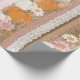 This elegant seamless pattern wrapping paper captures the warmth of fall with a charming blend of orange and white pumpkins surrounded by delicate florals in pink, white, and yellow. Leafy branches and small blooms add softness, while vertical stripes in pink and brown, lace trims, and white polka dots create rich visual texture. A cosy and feminine fall-inspired design ideal for seasonal decor lovers, cottagecore aesthetics, and autumn enthusiasts.