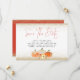 Autumn Pumpkins Gold Glitter QR Code Wedding. Florals and pumpkins in the colours of fall oranges, terracottas and creams, with a touch of gold faux glitter, as well as gold glitter borders at the top and bottom. With a modern set script for Save The Date and the rest of the text you can easily personalise with your details. Add your QR code to your wedding website on the back or delete this and the text on the back if not required.