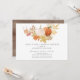Beautiful bridal shower invitation featuring watercolor leaves & pumpkins set on a white background with a coordinating rustic wood back.