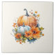 Autumn Pumpkins with Flowers and Foliage Ceramic Tile