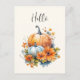 Autumn Pumpkins with Flowers and Foliage Hello Postcard
