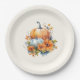 Autumn Pumpkins with Flowers and Foliage Paper Plate