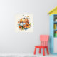 Poster with a fall themed image. Orange and white pumpkins surrounded by fall leaves and orange flowers.