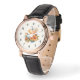 Watch with a fall themed image. Orange and white pumpkins surrounded by fall leaves and orange flowers.