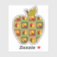 Four squares are decorated with leaves and pumpkins in fall tones of red, orange, yellow, and brown. White stitching adds a decorative touch, giving the repeating pattern the appearance of a quilt, creating a perfectly cosy feeling for autumn. The shape of an apple creates a mask for the design to add a final seasonal touch.