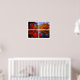 Bright Autumn window landscape to enhance your walls in any season. Beautiful foilage of red trees, a bridge, and a river are displayed in this colourful wall art.