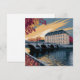 This stylized illustration captures a serene European riverside scene framed by warm autumn foliage and classic architecture. The balanced composition highlights a grand riverside building, an elegant stone bridge, and rich reflections across calm water. With a refined poster-style aesthetic, simplified shapes, and a striking seasonal color palette, this artwork delivers a timeless, atmospheric mood perfect for lovers of travel-inspired cityscapes, architecture, and fall-themed visual storytelling.