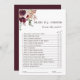This "Bride or Groom" bridal shower game features a watercolor flower bouquet of dahlias, garden roses, and peony in burgundy red, maroon, blush pink over leaves. For more advanced customisation of this design, please click the BLUE DESIGN TOOL BUTTON. Matching items are also available.