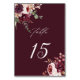 Autumn Romance Burgundy Floral Wedding Table Number