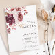 This wedding invitation features a watercolor flower bouquet of dahlia, garden rose, and hydrangea in burgundy red, maroon, blush pink over fall leaves. For more advanced customisation of this design, please click the BLUE DESIGN TOOL BUTTON. Matching items are also available.