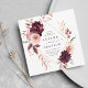 This wedding invitation features a watercolor flower wreath of dahlias, garden roses, and peony in burgundy red, maroon, blush pink over fall leaves with a faux gold diamond shape frame. For more advanced customisation of this design, please click the BLUE DESIGN TOOL BUTTON. Matching items are also available.