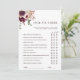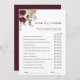 This "Over or Under" bridal shower game features a watercolor flower bouquet of dahlias, garden roses, and peony in burgundy red, maroon, blush pink over leaves. For more advanced customisation of this design, please click the BLUE DESIGN TOOL BUTTON. Matching items are also available.