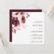 This wedding invitation features a watercolor flower bouquet of dahlia, garden rose, and hydrangea in burgundy red, maroon, blush pink over fall leaves. For more advanced customisation of this design, please click the BLUE DESIGN TOOL BUTTON. Matching items are also available.