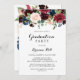 This autumn rustic modern calligraphy graduation party invitation is perfect for a simple celebration. The design features burgundy, red, navy, blue and blush radiant and graceful hand-painted flowers, inspiring natural beauty.