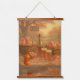 The polyester fabric displayed many wrinkles and several sharp creases throughout. At the bottom of the tapestry, I noticed a bulge in the fabric because it was not pulled tight enough before being connected to the wooden boards. It took me over an hour to spay water on the tapestry before putting it on an ironing board where I used a warm iron over a polyester cloth to remove the wrinkles and creases in the material. I was able to get out the wrinkles and creases that made that tapestry look as beautiful as its picture.
