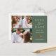 Autumn Sage Green Photo Save The Date Announcement Postcard. Announce your date with a photo collage save the date that blends your favourite snapshots with fall-inspired florals and leaves. The sage green background complements the earthy tones of terracotta and rust, creating a warm, cohesive look. Begin your journey with autumn beauty—make it yours now.