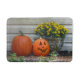 A pumpkin, jack-o-lantern and yellow mums are perfect for an autumn display.