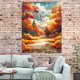 Watercolor Autumn Beautiful Nature Landscape Poster - Serene Fall Scenic Wall Art Print