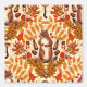Hand-painted squirrel and autumn flora- leaves; mushrooms; acorns and berrries