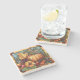 The coasters are gorgeous, a quality feel and heavy weight. They look like a precious archeological find. A rustic stone juxtaposed with a modern floral black and white print. I like the way the print goes slightly imperfect on the cut stone edges giving them a kind-of natural beauty.