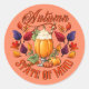 Autumn theme, featuring colourful leaves, pumpkins, & a pumpkin spice beverage.
