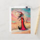 Autumn Stroll Halloween Witch and Black Cat Art Postcard