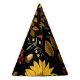 Autumn sunflowers with black background pattern. Maple leaves, sunflowers, flowers ditsy. Perfect for fall, Thanksgiving, holidays, fabric, textile. Seamless repeat swatch.