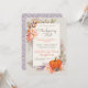 This flat card invitation has a pale cream rectangle in the centre surrounded by a variety of autumn botanicals (leaves, berries, acorns, flowers, twigs and a pumpkin) in soft shades of tan, orange, lavender, green, and taupe. Place your custom text within the rectangle using the easy, provided templates. The reverse side is printed with an all-over pattern of cream leaves against a coordinating grey-lavender. Soft and elegant yet modern - perfect for your Thanksgiving dinner, bridal shower, or other fall themed event.