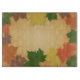 Autumn theme glass cutting board with frame of illustrated Autumn leaves.