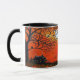 Autumn art mug . This orange and black silhouette can take you from Halloween through Thanksgiving. A lovely scene showing a family with kids playing in the leaves as parents/grandparents rake and burn them..I love that smell. These mugs would be perfect with some hot cider in them for just such an evening. Art titled "Burning Leaves" by Christine Altmann