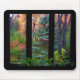 This mousepad will have you gazing out the window at all the lovely autumn colours. Red burning bush, orange and yellow maples, blue spruce, bare tree trunks and still green foliage are framed by the lines of the window. Graceful ferns are inside.