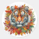 Autumn Tiger Face Among Fall Leaves Classic Round Sticker