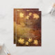 This autumnal themed rustic wedding details card features a peaceful, tree-lined walking trail resplendent in a stunning fall colour palette in shades of gold, orange and red - semitransparent maple leaf shapes line the top and bottom edge - by katz_d_zynes
