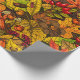 Hand-drawn autumn pattern featuring mushrooms,various berries, fallen leaves and bugs