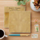 This beautiful square envelope features a rustic or vintage style with a faux parchment print, making it look like aged paper. Inside the back flap you can see the branches of an autumn tree decorated with strings of lights peeking out. The back flap has a printed return address.