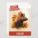 A cute watercolor birthday card featuring a boar celebrating autumn on the front with "Happy Birthday" in a white, all-caps bold font. Personalise the front by adding your name(s). The back of the card features space for your typed or handwritten message.
