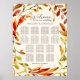 Beautiful bold watercolor fall leaves decorate the border of this boho autumn wedding seating chart poster Gorgeous shades of red, orange, and brown form the botanical edges of this cream outdoor decor for up to 14 tables. A modern bohemian design with bright, fun colours.