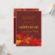 Beautiful Autumn motif wedding invitation cards with envelopes, decorated with fiery leaves and gold bow in warm fall colours. Illustrations © Teri Francis. Matching postage stamps and greeting cards available in gallery.