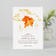 This luxurious foil gilded wedding invitation is perfect for a romantic, elegant autumn wedding. The design features a maple leaf, watercolored in orange brownish autumnal colours with veins and outlines indicated with gold foil.