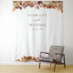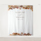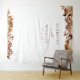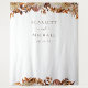 Autumn Wedding Tapestry. This elegant wedding tapestry | photo booth background features hand-painted watercolor burnt orange and terracotta leaves, cream and beige dahlias, and beautiful rust-coloured roses on a white background with the bride and groom's names and wedding date. Find matching items in the White Autumn Romance Collection.