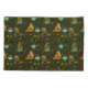 A red fox, rabbit, owl, luna moths, pine marten with autumn leaves, pumpkins, flowers and acorns in a backdrop of deep green
