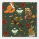 A red fox, rabbit, owl, luna moth, pine marten, with autumn leaves, pumpkins, flowers and acorns all in a backdrop of deep green