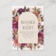 This elegant and modern "fall in love" gender-neutral baby shower please bring a book/books for baby/book request enclosure card features a wreath of fall/autumn leaves and flowers in arch shape on a tan/light beige background framed by a white border. The reverse side features a beige background with geometric patterns. Personalise it for your needs. You can find matching products at my store.