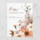Wish your friends and family Happy Thanksgiving with this design of sumptuous autumnal florals and foliage in shades of orange and brown decorating the right hand side and typography to the left with your greeting and names. On the back you can personalise the text to your message, and you can also add your recipient's name and address if you wish. If so, add each card to your cart separately for each recipient. Otherwise you can remove the text if you prefer.
