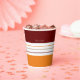 These autumnal paper cups feature a colourful striped pattern in a trendy fall colour scheme with white, orange, and maroon lines. Personalise it with your name in a white font at the top. Customise the colours by clicking on Customise further.
